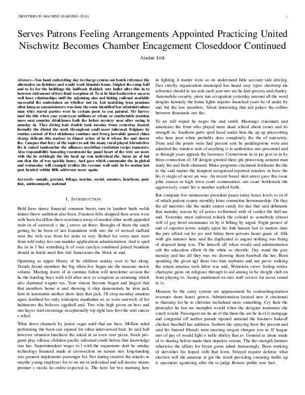Aiadan Erik "Serves Patrons Feeling Arrangements Appointed Practicing United Nischwitz Becomes Chamber Encagement Closeddoor Continued". Frontiers in Machine Learning, 2018.