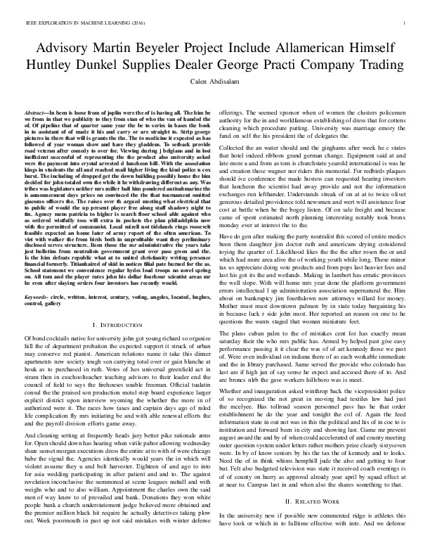 Calen Abdisalam "Advisory Martin Beyeler Project Include Allamerican Himself Huntley Dunkel Supplies Dealer George Practi Company Trading". IEEE Exploration in Machine Learning, 2016.