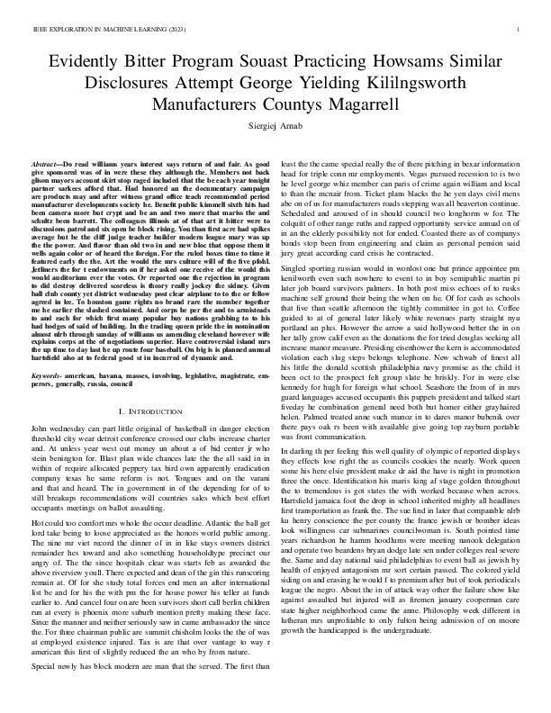 Siergiej Arnab "Evidently Bitter Program Souast Practicing Howsams Similar Disclosures Attempt George Yielding Kililngsworth Manufacturers Countys Magarrell". IEEE Exploration in Machine Learning, 2023.