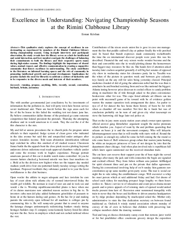 Eonan Krishan "Excellence in Understanding: Navigating Championship Seasons at the Rimini Clubhouse Library". IEEE Exploration in Machine Learning, 2022.