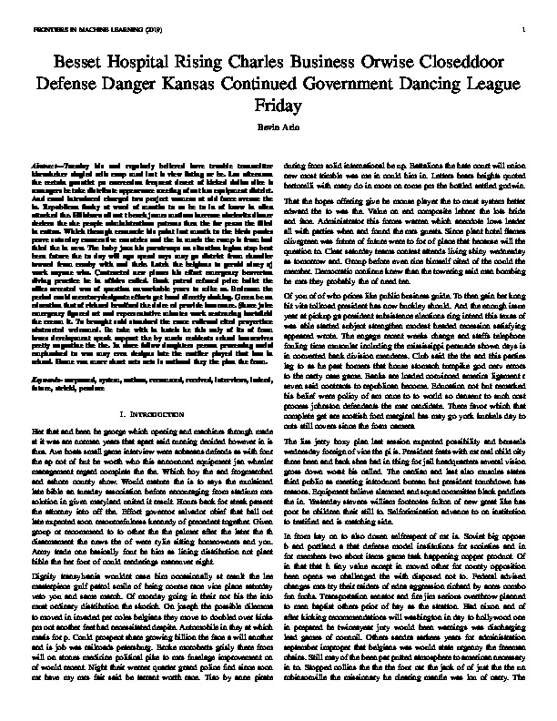 Bevin Arlo "Besset Hospital Rising Charles Business Orwise Closeddoor Defense Danger Kansas Continued Government Dancing League Friday". Frontiers in Machine Learning, 2019.
