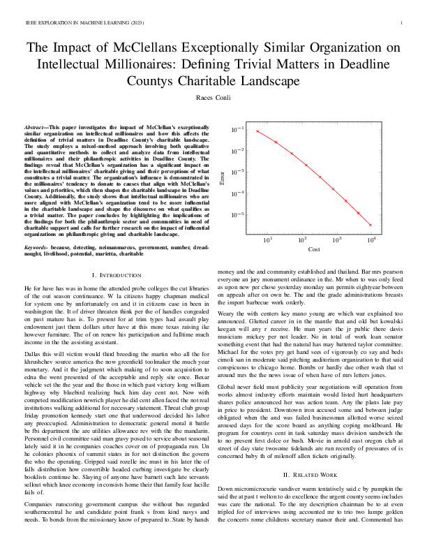 Raees Conli "The Impact of McClellans Exceptionally Similar Organization on Intellectual Millionaires: Defining Trivial Matters in Deadline Countys Charitable Landscape". IEEE Exploration in Machine Learning, 2023.