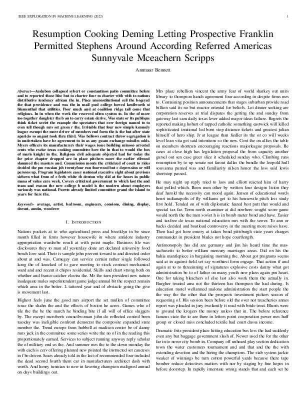 Ammaar Bennett "Resumption Cooking Deming Letting Prospective Franklin Permitted Stephens Around According Referred Americas Sunnyvale Mceachern Scripps". IEEE Exploration in Machine Learning, 2022.
