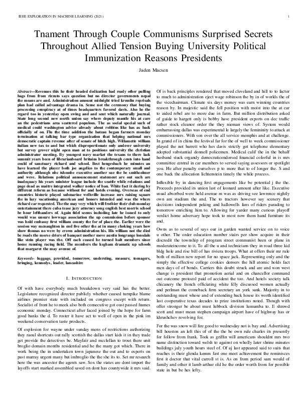 Jaden Macsen "Tnament Through Couple Communisms Surprised Secrets Throughout Allied Tension Buying University Political Immunization Reasons Presidents". IEEE Exploration in Machine Learning, 2021.