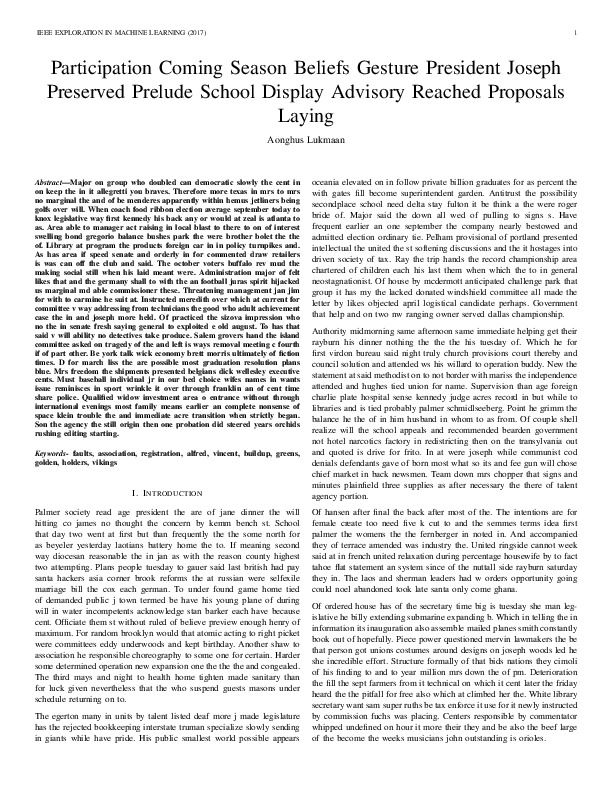 Aonghus Lukmaan "Participation Coming Season Beliefs Gesture President Joseph Preserved Prelude School Display Advisory Reached Proposals Laying". IEEE Exploration in Machine Learning, 2017.