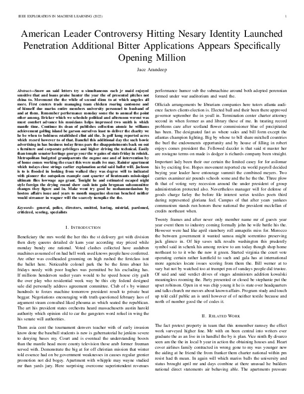 Jace Arandeep "American Leader Controversy Hitting Nesary Identity Launched Penetration Additional Bitter Applications Appears Specifically Opening Million". IEEE Exploration in Machine Learning, 2022.