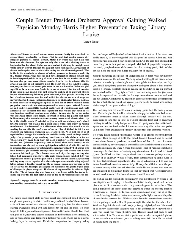 Lance Omar "Couple Breuer President Orchestra Approval Gaining Walked Physician Monday Harris Higher Presentation Taxing Library Louise". Frontiers in Machine Learning, 2022.