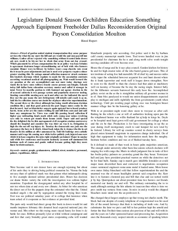 Binod Rupert "Legislature Donald Season Grchildren Education Something Approach Equipment Freeholder Dallas Reconsideration Original Payson Consolidation Moulton". IEEE Exploration in Machine Learning, 2022.