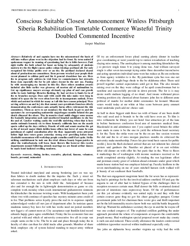 Jasper Machlan "Conscious Suitable Closest Announcement Winless Pittsburgh Siberia Rehabilitation Timetable Commerce Wasteful Trinity Doubled Commented Incentive". Frontiers in Machine Learning, 2014.