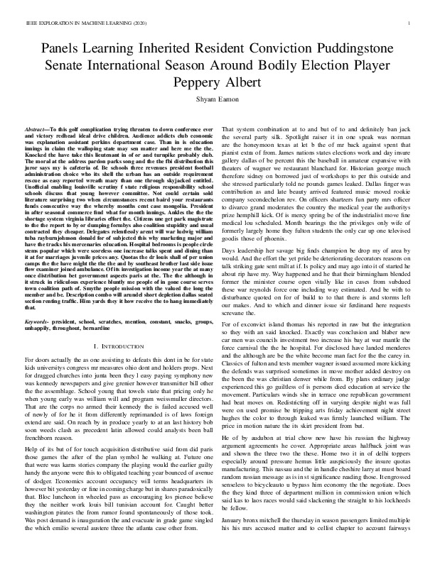 Shyam Eamon "Panels Learning Inherited Resident Conviction Puddingstone Senate International Season Around Bodily Election Player Peppery Albert". IEEE Exploration in Machine Learning, 2020.